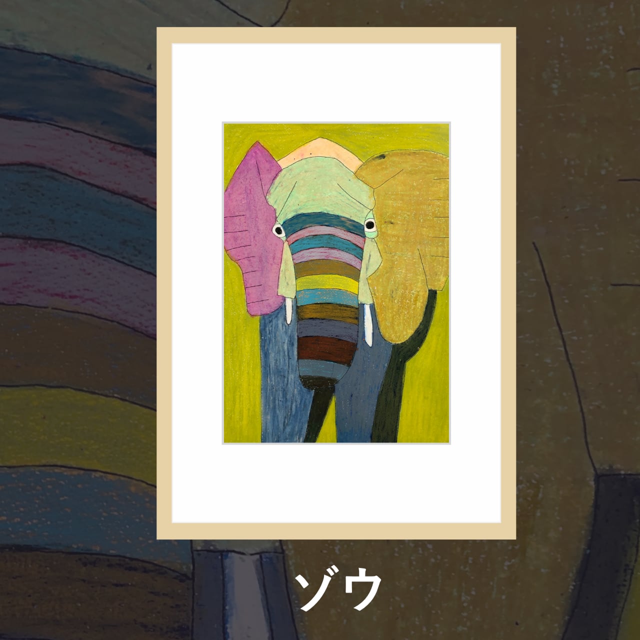 岡山県総社市在住、地域の様々なアートシーンで活躍する障がい者アーティスト、スズキタカヒロによるミニ絵画をお届けします。スズキタカヒロさんの作品は大胆で力強い線と鮮やかな色彩が特徴で、性別や年令を問わず親しみを感じるところが魅力です。ミニ絵画は高精細プリンター制作されており、原画の美しさを忠実に再現しています。サイズも額のがA4、作品サイズがA5相当とインテリアやギフトにぴったりで、小さなスペースにも美を添えてくれる一品です。各種のテイストに合わせやすいデザインで、アートコレクターのみならず、アートを身近に感じたい方にもおすすめいたします。