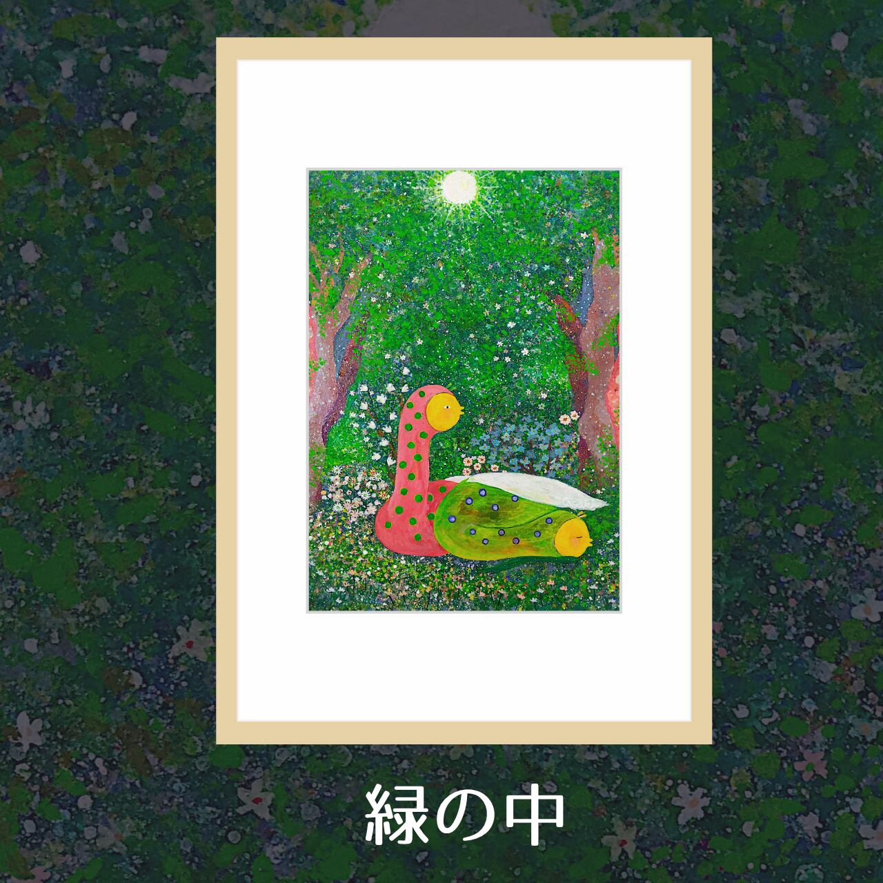 幻想的な世界を描く作家「あさき」さんのミニ絵画をお届けします。あさきさんの絵には「切羽詰まったときに現実からはなれ、空想の世界でホッと一息つきたい」そのような想いが込められており、不思議な生き物たちが案内役となって、見る人を幻想世界の休憩所へとナビゲートしてくれます。あさきさんの作品はカワイイ不思議な生き物が魅力的ですが、緻密で繊細なタッチで表現された優しく柔らかな幻想世界も魅力の一つです。ミニ絵画は高精細プリンターで製作されており、原画の美しさを忠実に再現したレプリカ製品です。サイズも額のがA4、作品サイズがA5相当とインテリアやギフトにぴったりで、小さなスペースにも美を添えてくれる一品です。各種のテイストに合わせやすいデザインで、アートコレクターのみならず、アートを身近に感じたい方にもおすすめいたします。